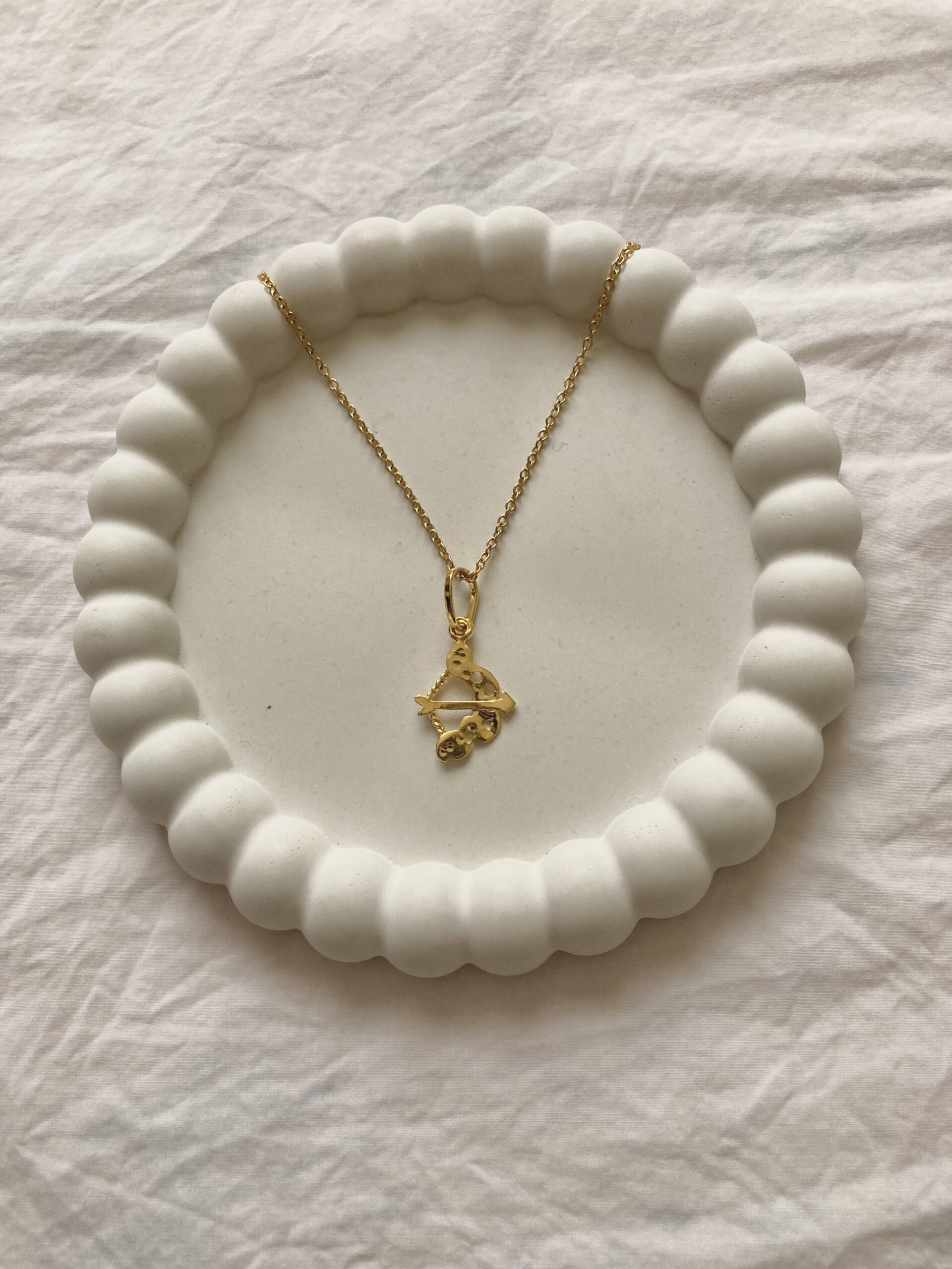 • Arco flecha en bronce con baño en oro de 24 kilates