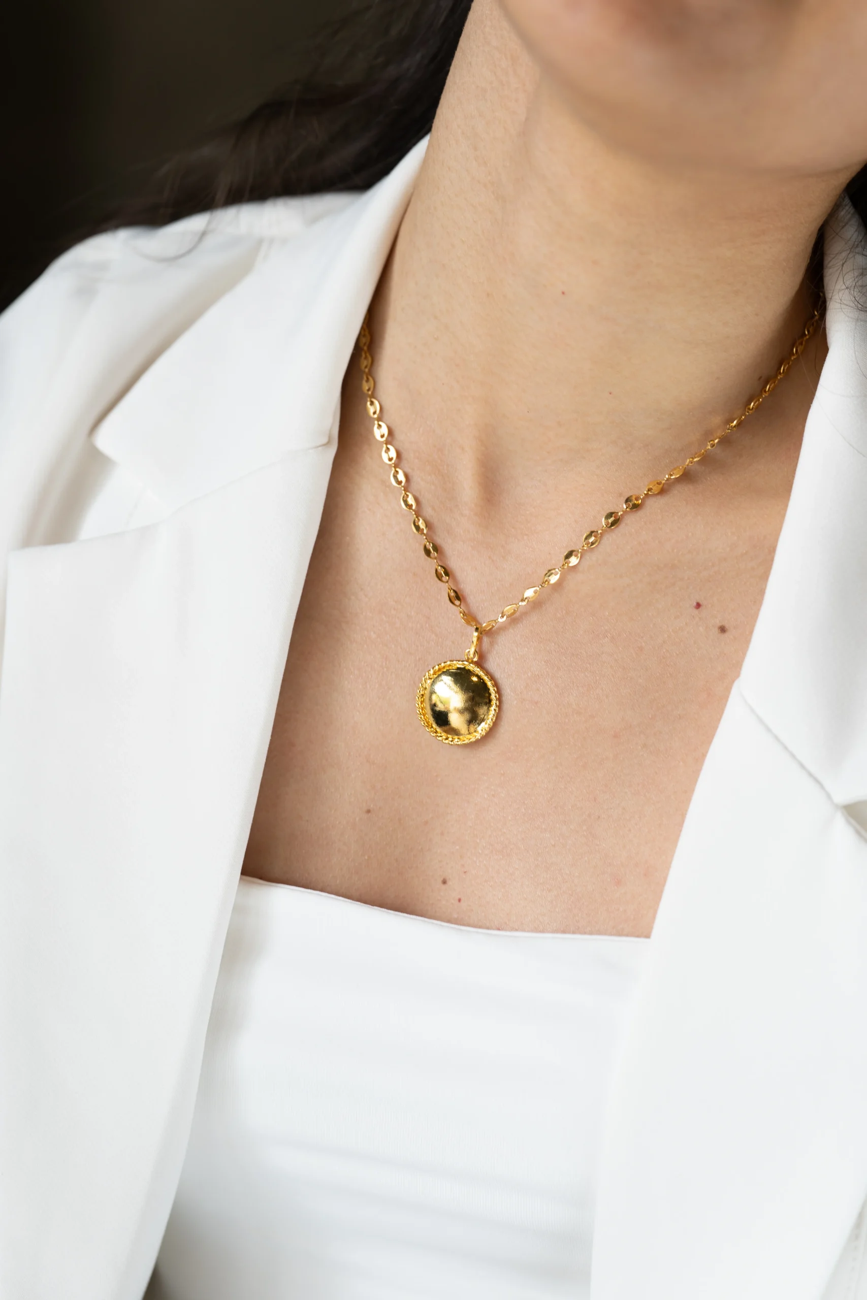 • Dije circular melcocha en bronce con baño en oro de 24 kilates