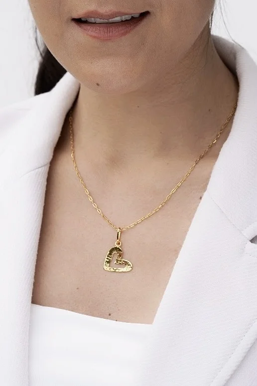 • Dije corazón martillado plano en bronce con baño en oro de 24 kilates