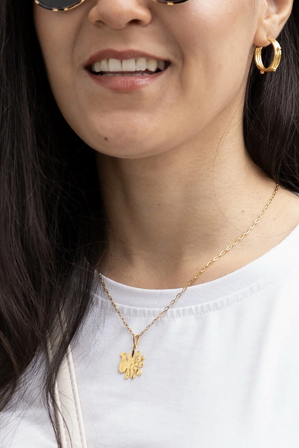• Dije Pavo real martillado plano en bronce con baño en oro de 24 kilates