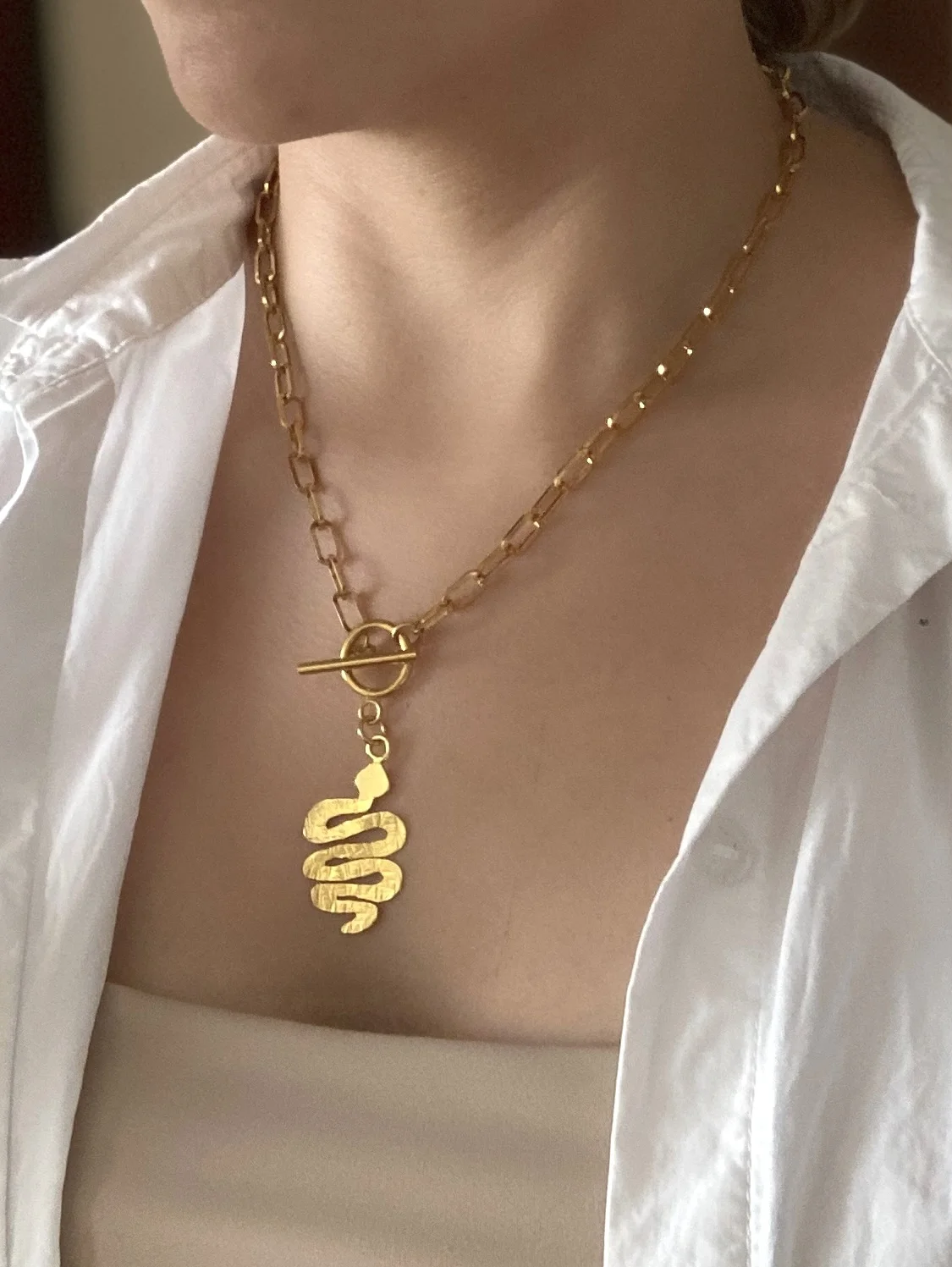 • Dije serpiente en bronce con baño en oro de 24 kilates