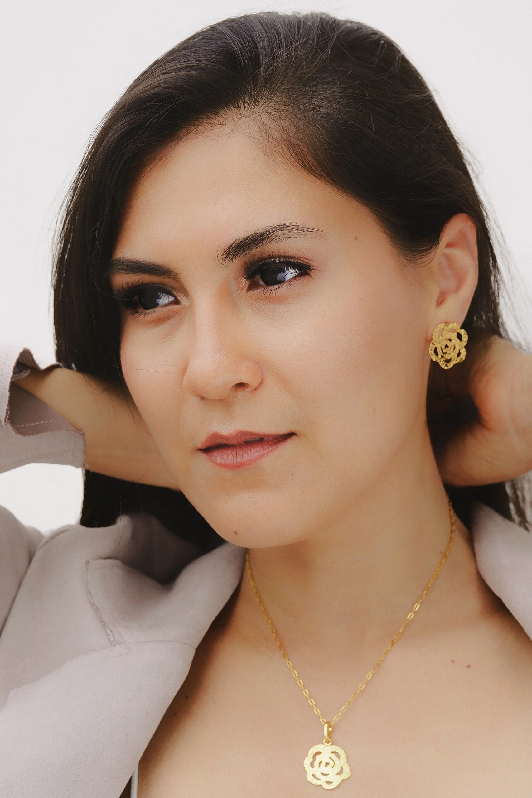 • Topos rosa martillada plana en bronce con baño en oro de 24 kilates