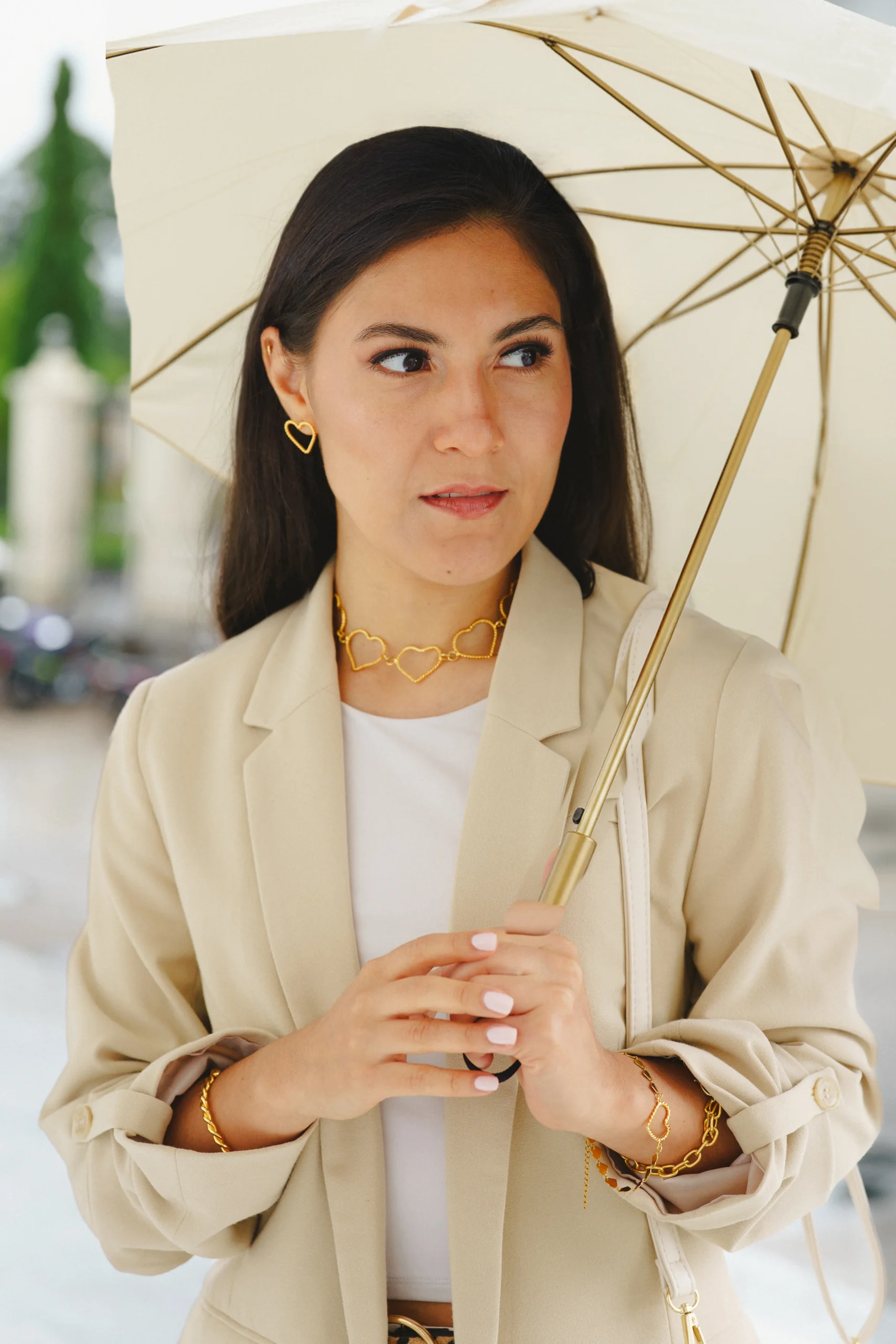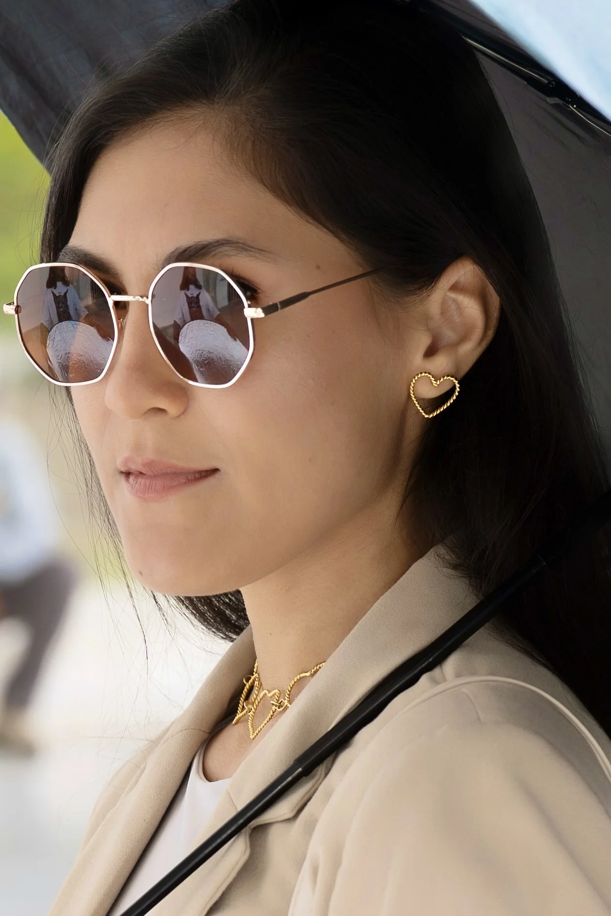 • Topos corazón hilo melcocha en bronce con baño en oro de 24 k